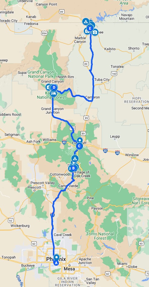 Arizona Road Trip Map with Cities